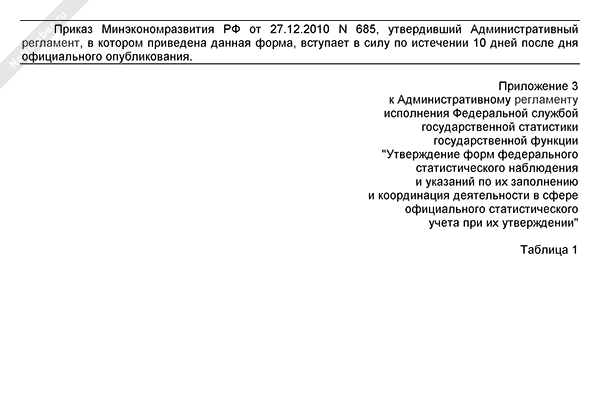 - Источник– Приказ Минэкономразвития РФ от 27.12.2010 № 685