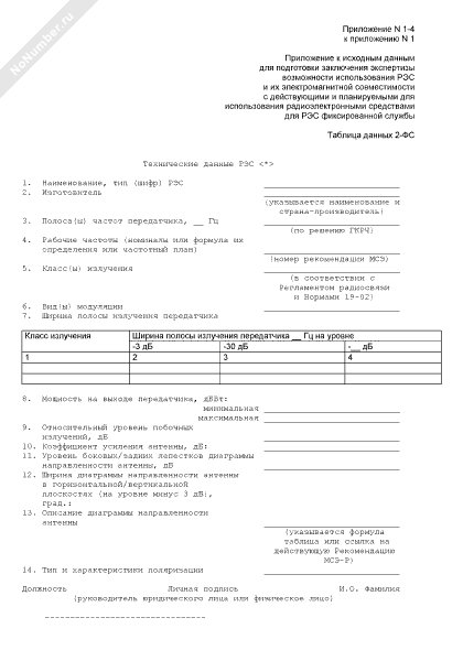 Технические данные РЭС (Таблица данных 2-ФС) (приложение к форме N ИД-ФС)