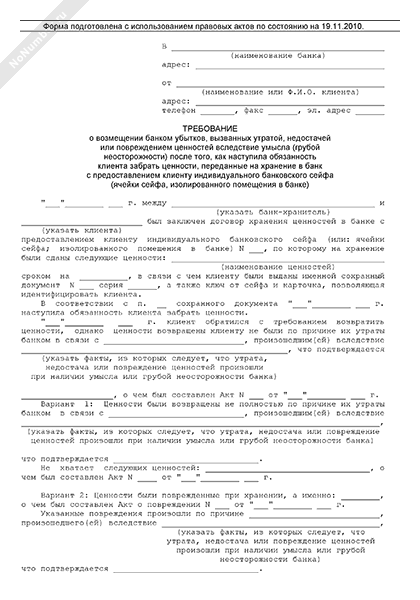 Требование клиента о возмещении банком убытков, вызванных утратой, недостачей или повреждением ценностей вследствие умысла (грубой неосторожности) после того, как наступила обязанность клиента забрать ценности, переданные на хранение в банк с предоставлением клиенту индивидуального банковского сейфа (ячейки сейфа, изолированного помещения в банке)