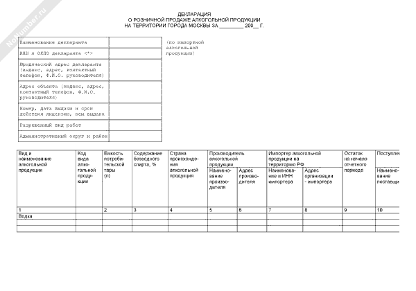 Декларация о розничной продаже алкогольной продукции на территории города Москвы (по импортной алкогольной продукции)