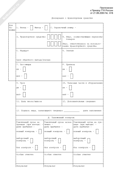 - Источник– Приказ ГТК РФ от 21.08.2003 № 916