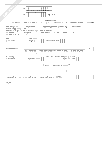 Декларация об объемах оборота этилового спирта, алкогольной и спиртосодержащей продукции (рекомендуемый образец заполнения)