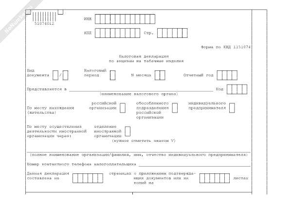 Налоговая декларация по акцизам на табачные изделия (рекомендуемый образец заполнения)