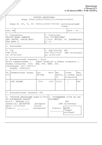 - Источник– Письмо ГТК РФ от 09.07.1997 № 02-07/12925