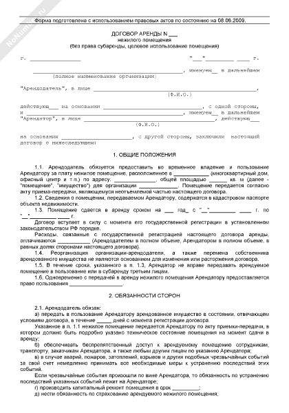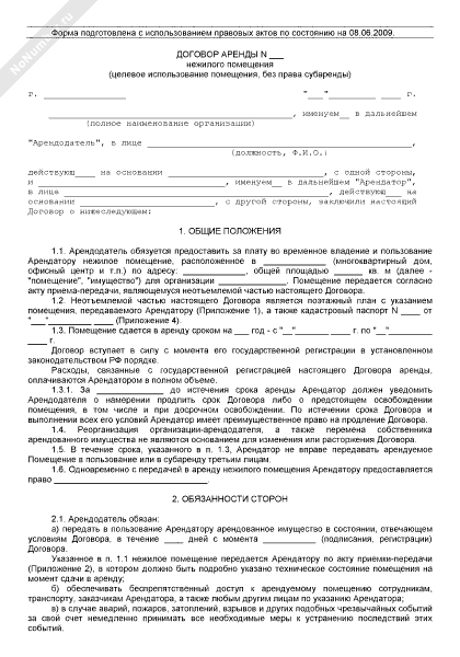 - 188Договор аренды нежилого помещения (без права субаренды, целевое использование помещения)