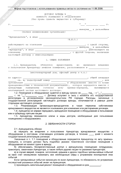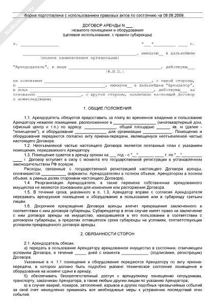 - 187Договор аренды нежилого помещения и оборудования (целевое использование, с правом субаренды)