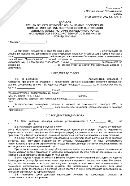 - 198Договор аренды объекта нежилого фонда (здания, сооружения, помещения в здании), построенного за счет средств целевого бюджетного инвестиционного фонда, находящегося в государственной собственности города Москвы