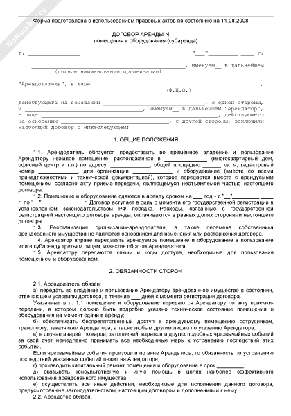 - 183Договор аренды помещения и оборудования (субаренда)