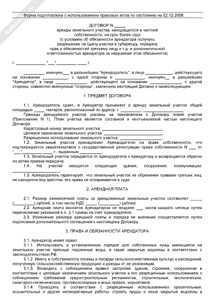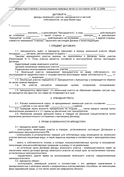 - 191Договор аренды земельного участка, находящегося в частной собственности, на срок более года