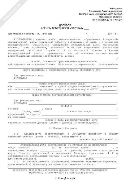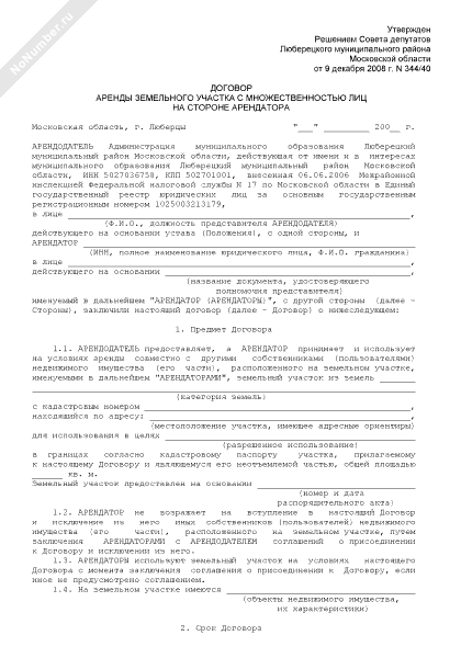 - 196Договор аренды земельного участка с множественностью лиц на стороне арендатора на территории Люберецкого муниципального района Московской области