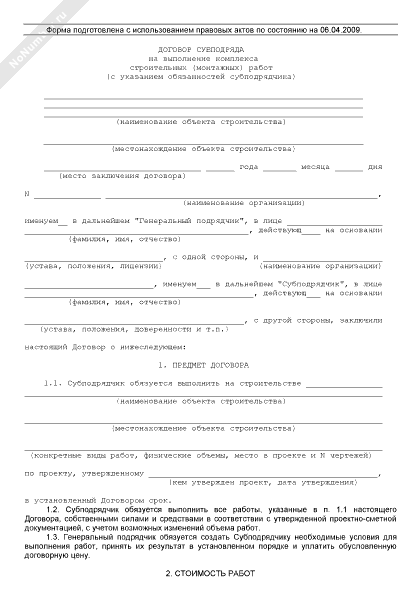 - 2041Договор субподряда на выполнение комплекса строительных (монтажных) работ (с указанием обязанностей субподрядчика)
