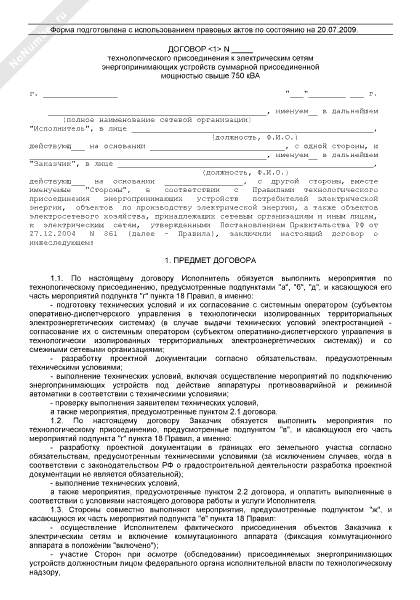 - 2045Договор технологического присоединения к электрическим сетям энергопринимающих устройств суммарной присоединенной мощностью свыше 750 кВА