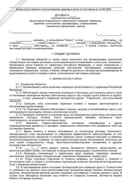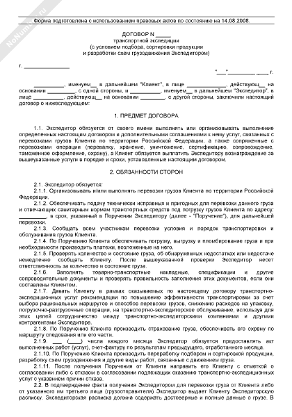 - 2048Договор транспортной экспедиции (с расширенным перечнем ответственности экспедитора)