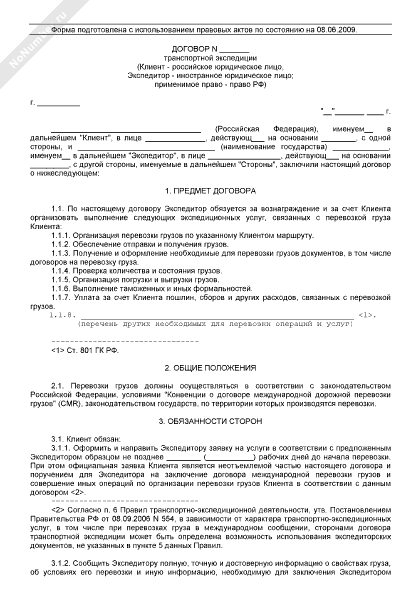 - 2054Договор транспортной экспедиции на перевозку грузов автомобильным транспортом по территории РФ