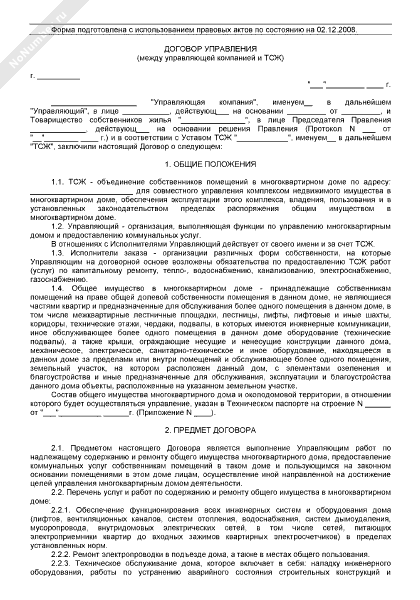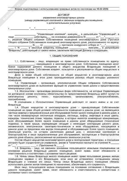 - 2059Договор управления многоквартирным домом (между управляющей компанией и законным владельцем помещения; с дополнительными услугами)