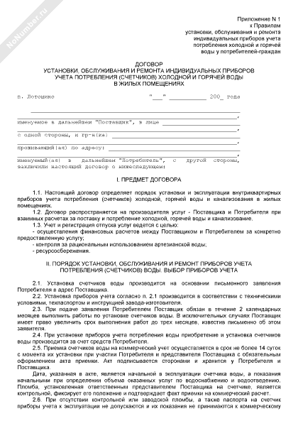 - 2060Договор установки, обслуживания и ремонта индивидуальных приборов учета потребления (счетчиков) холодной и горячей воды в жилых помещениях на территории муниципального образования «Лотошинский район» Московской области