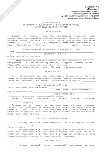 - 212Договор аренды на муниципальное имущество городского округа Орехово-Зуево Московской области, переданное на праве оперативного управления, заключенный по итогам торгов