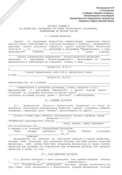 - 214Договор аренды на муниципальное имущество городского округа Орехово-Зуево Московской области, переданное на праве оперативного управления