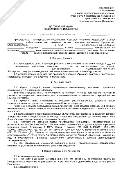 - 211Договор аренды недвижимого имущества сельского поселения Нудольское Клинского муниципального района Московской области (вариант 1)