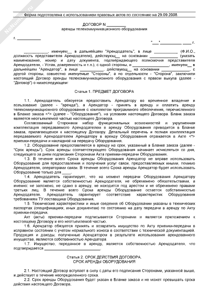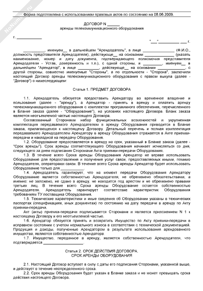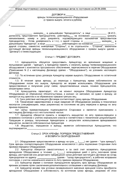 - 218Договор аренды телекоммуникационного оборудования (с правом выкупа, оплата в рублях)