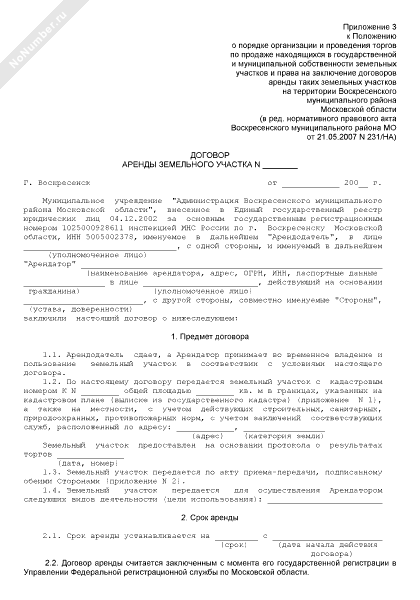 - 205Договор аренды земельного участка, находящегося в государственной собственности, расположенного на территории Воскресенского муниципального района Московской области