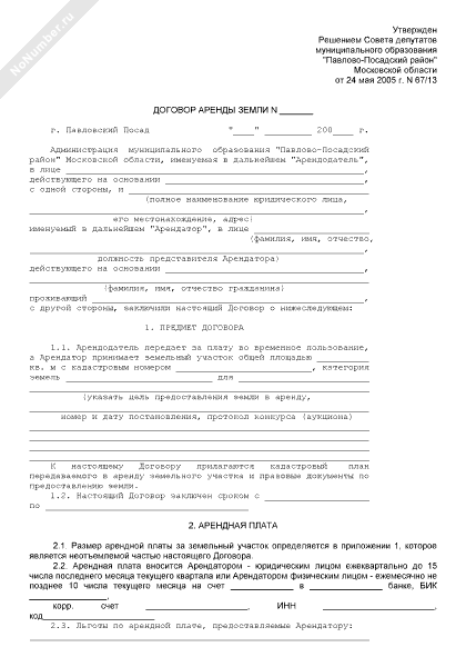 - 215Договор аренды земли за плату во временное пользование на территории муниципального образования «Павлово-Посадский район» Московской области