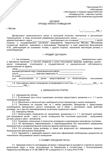 - 201Договор аренды жилого помещения (квартиры), относящегося к государственной и муниципальной собственности города Москвы, для использования в целях предоставления в безвозмездное пользование выпускнику детского дома или школы-интерната