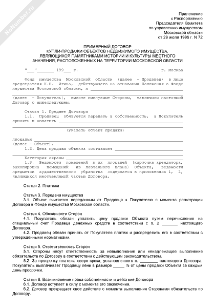 - 2309Примерный договор купли-продажи объектов недвижимого имущества, являющихся памятниками истории и культуры местного значения, расположенных на территории Московской области