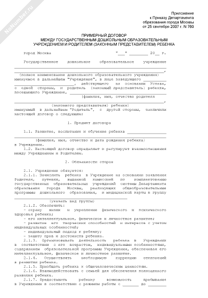 - 2304Примерный договор между государственным дошкольным образовательным учреждением и родителем (законным представителем) ребенка