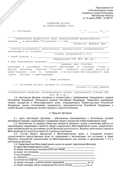 - 2307Примерный договор на предоставление услуг на содержание и ремонт общего имущества в многоквартирном доме на территории городского округа Котельники Московской области