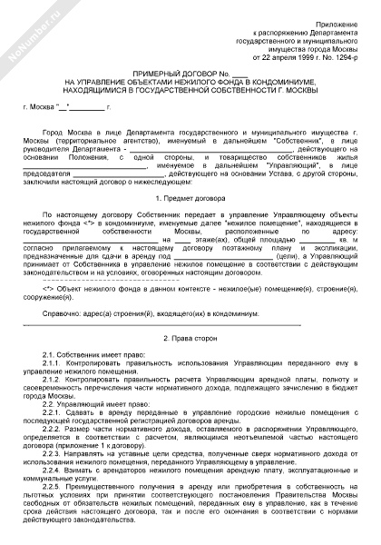 - 2312Примерный договор на управление объектами нежилого фонда в кондоминиуме, находящимися в государственной собственности г. Москвы