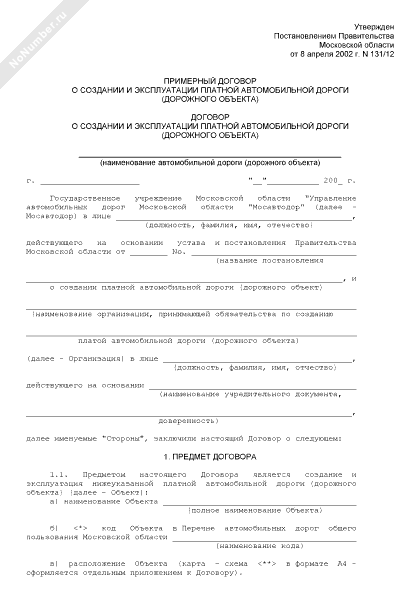 - 2305Примерный договор о создании и эксплуатации платной автомобильной дороги (дорожного объекта)