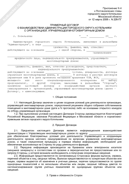 - 2308Примерный договор о взаимодействии администрации городского округа Котельники Московской области с организацией, управляющей многоквартирным домом