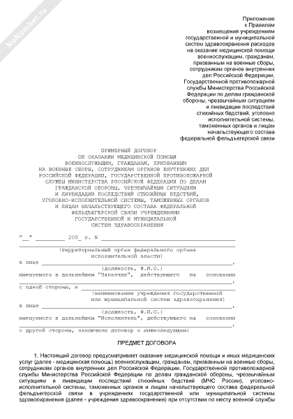 - 2315Примерный договор об оказании медицинской помощи военнослужащим, гражданам, призванным на военные сборы, сотрудникам органов внутренних дел Российской Федерации, Государственной противопожарной службы Министерства Российской Федерации по делам гражданской обороны, чрезвычайным ситуациям и ликвидации последствий стихийных бедствий, уголовно-исполнительной системы, таможенных органов и лицам начальствующего состава федеральной фельдъегерской связи учреждениями государственной и муниципальной систем здравоохранения