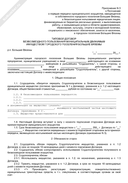 - 2519Типовой договор безвозмездного пользования муниципальным движимым имуществом городского поселения Большие Вяземы Московской области