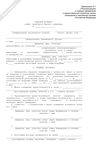 - 2501Типовой договор найма служебного жилого помещения в таможенных органах Российской Федерации