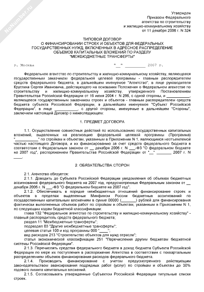 - 2505Типовой договор о финансировании строек и объектов для федеральных государственных нужд, включенных в адресное распределение объемов капитальных вложений по разделу «Межбюджетные трансферты»