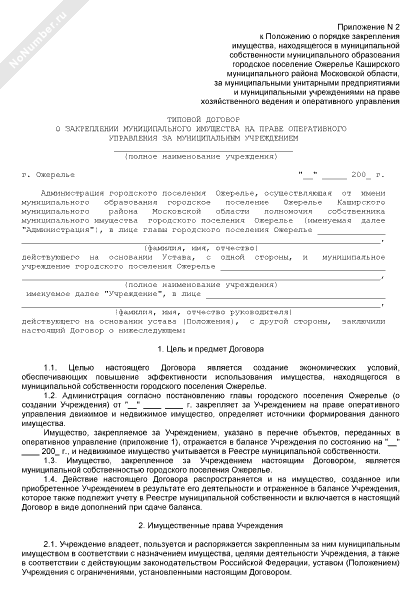 - 2512Типовой договор о закреплении муниципального имущества на праве оперативного управления за муниципальным учреждением городского поселения Ожерелье Каширского района Московской области