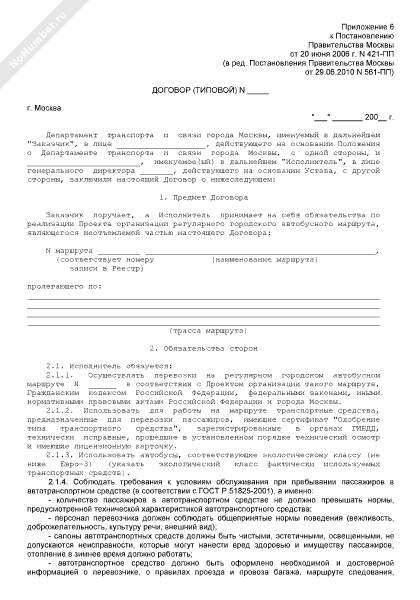 - 2503Типовой договор по реализации проекта организации регулярного городского автобусного маршрута