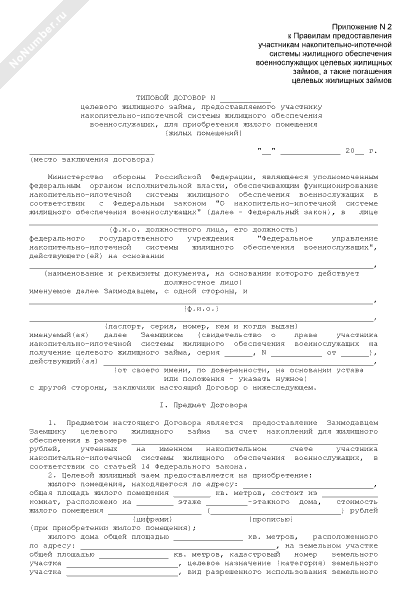 - 2514Типовой договор целевого жилищного займа, предоставляемого участнику накопительно-ипотечной системы жилищного обеспечения военнослужащих, для приобретения жилого помещения (жилых помещений)