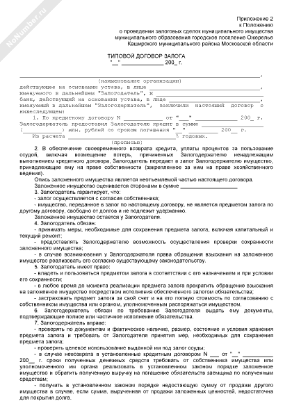 - 2510Типовой договор залога муниципального имущества городского поселения Ожерелье Каширского муниципального района Московской области