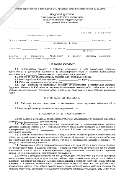 - 2556Трудовой договор с экономистом по бухгалтерскому учету и анализу хозяйственной деятельности (бессрочный; без испытания)