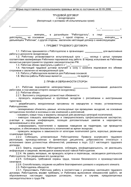 - 2549Трудовой договор с экскурсоводом (бессрочный; с условием об испытательном сроке)