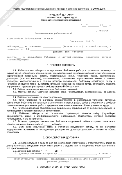 - 2558Трудовой договор с инженером по охране труда