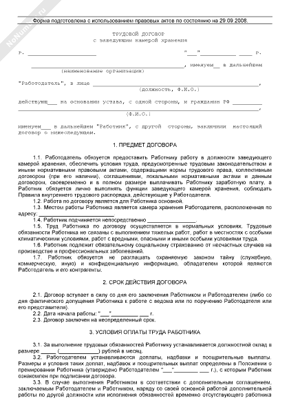- 2555Трудовой договор с заведующим камерой хранения