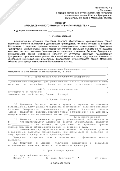 - 251Договор аренды движимого муниципального имущества сельского поселения Якотское Дмитровского муниципального района Московской области