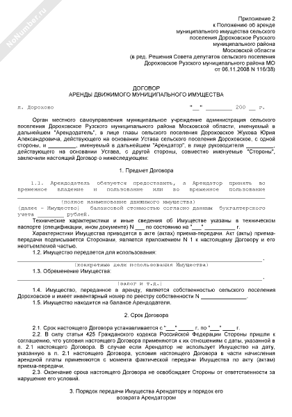 - 245Договор аренды движимого муниципального имущества сельского поселения Дороховское Рузского муниципального района Московской области