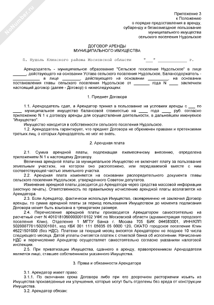 - 252Договор аренды муниципального имущества сельского поселения Нудольское Клинского муниципального района Московской области