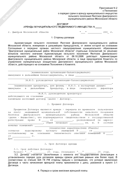 - 250Договор аренды муниципального недвижимого имущества сельского поселения Якотское Дмитровского муниципального района Московской области