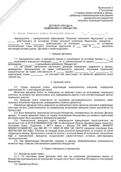 - 248Договор аренды недвижимого имущества сельского поселения Нудольское Клинского муниципального района Московской области (вариант 2)